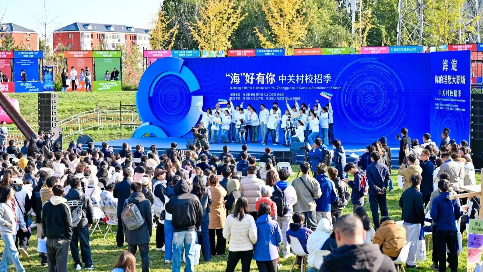 10月18日,“!焙糜心恪嘘P(guān)村校招季啟動(dòng)儀式暨海淀區(qū)2025年秋季綜合雙選會(huì)在京張鐵路遺址公園舉行。