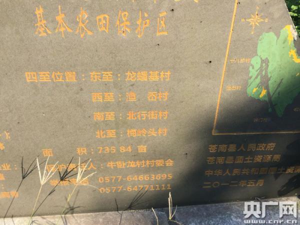 據(jù)村口不遠處的一塊石碑上寫著“蒼南縣金鄉(xiāng)鎮(zhèn)牛臥龍村基本農(nóng)田保護區(qū)”,面積735.84畝,村民告訴記者,征地范圍恰好在其中。記者來到金鄉(xiāng)鎮(zhèn)土管所,查詢結(jié)果顯示被征用土地的是耕地和林地,但已經(jīng)辦理了土地性質(zhì)變更手續(xù),成為建設用地。