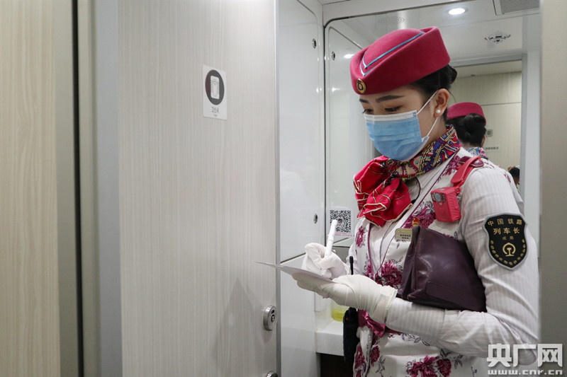 防疫工作是重中之重,列車重點部位消毒情況要一一記錄簽字確認(央廣網(wǎng)發(fā) 通訊員鐘潔 攝)