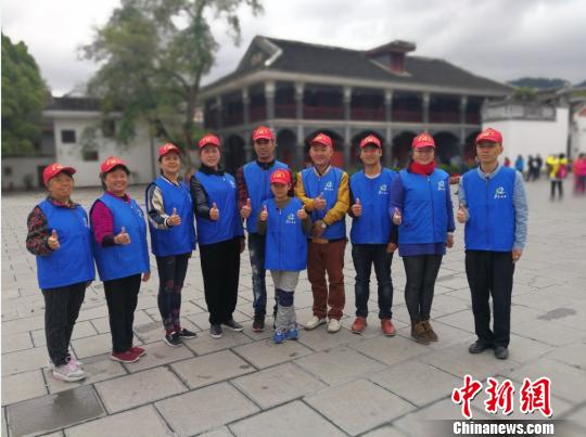 做完服務(wù)可漢與其他義工合影留念。 周嫻 攝