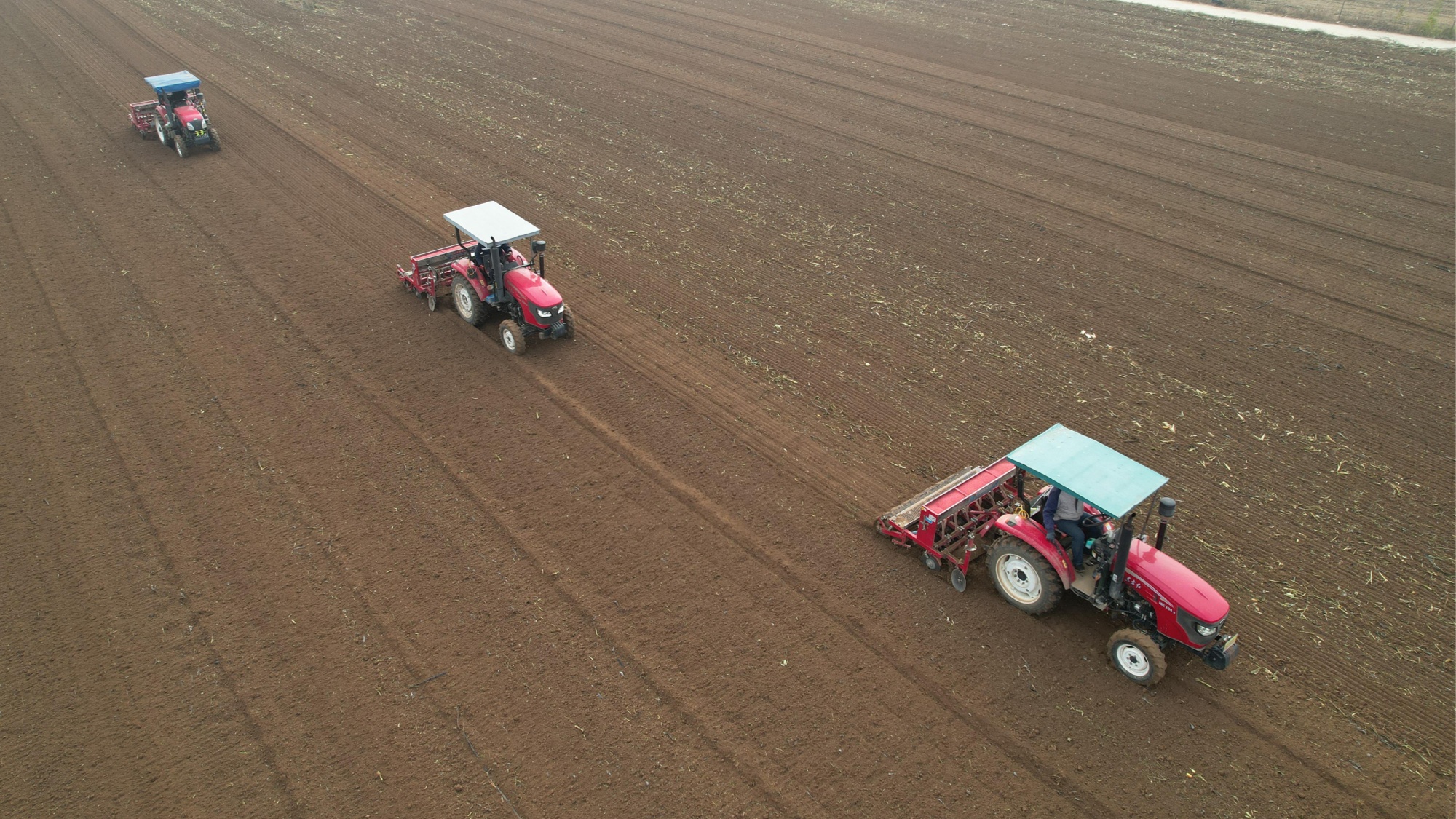 10月30日,在河北省順平縣東下叔村萬源家庭農場富硒小麥種植基地,當地農戶正抓緊播種冬小麥。