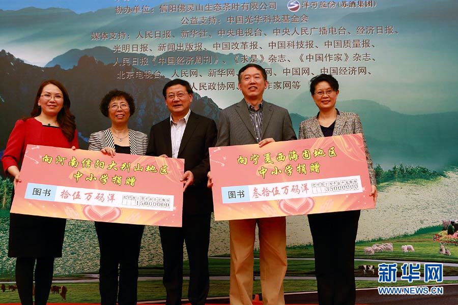 央廣網(wǎng)河南分網(wǎng)消息 據(jù)新華網(wǎng)報(bào)道:4月18號(hào),全國政協(xié)及民盟中央婦委會(huì)代表、寧夏自治區(qū)代表在“捐贈(zèng)儀式”上亮相。當(dāng)日,民盟中央婦委會(huì)攜手寧夏、河南兩地代表在京舉行“《梓涵行吟集》首發(fā)捐贈(zèng)暨著名書畫家作品義展”公益活動(dòng),向?qū)幭奈骱9毯秃幽闲抨柎髣e山中西部兩地區(qū)中小學(xué)捐贈(zèng)50萬碼洋圖書,建設(shè)“民盟愛心書屋”。(新華社記者 李明放 攝)
