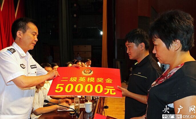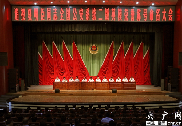 央廣網(wǎng)河南分網(wǎng)消息 8月29日,追授夏明臣同志全國公安系統(tǒng)二級英雄模范榮譽(yù)稱號命名大會在駐馬店市召開。會議中,與會領(lǐng)導(dǎo)向夏明臣同志的家屬頒發(fā)獎?wù)隆⒆C書和獎金,并宣讀河南省委政法委《關(guān)于在全省政法系統(tǒng)開展向夏明臣同志學(xué)習(xí)的決定》。