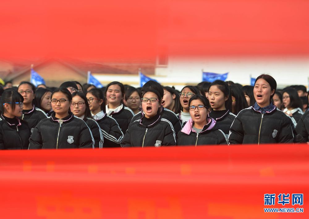 2月19日,河南省夏邑縣第一高級(jí)中學(xué)高三年級(jí)師生在集體宣讀誓言。當(dāng)日,河南省夏邑縣第一高級(jí)中學(xué)舉行“決勝高考百日沖刺”誓師會(huì),引導(dǎo)和鼓勵(lì)高三年級(jí)師生努力拼搏,科學(xué)備戰(zhàn),理性高考。新華網(wǎng)發(fā)(苗育才 攝) -