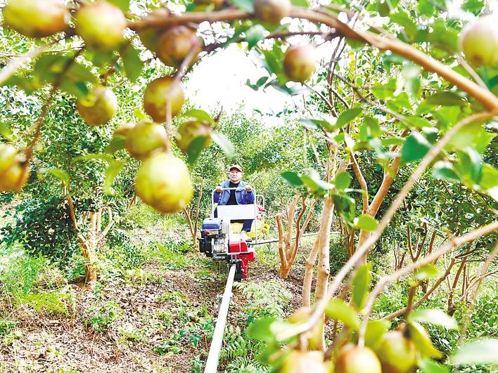 10月26日,在通城縣塘湖鎮(zhèn)閣壁村定武油茶專業(yè)合作社基地,漫山遍嶺的油茶樹上掛滿果子,村民穿梭其間,忙著采摘、運(yùn)輸油茶果。