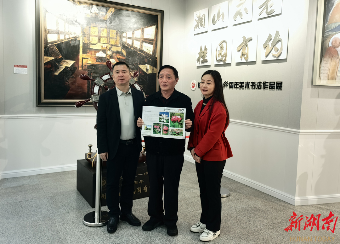 11月6日,桃江一中校友、省民俗攝影協(xié)會副主席胡立強返校捐贈藝術(shù)作品,包括一幅由中國硬筆書法家協(xié)會副主席、湖南省硬筆書法協(xié)會主席崔國強先生創(chuàng)作的題字作品,以及一本刊載有胡立強個人攝影作品《荷花》(組圖)的 《人民公安》雜志。