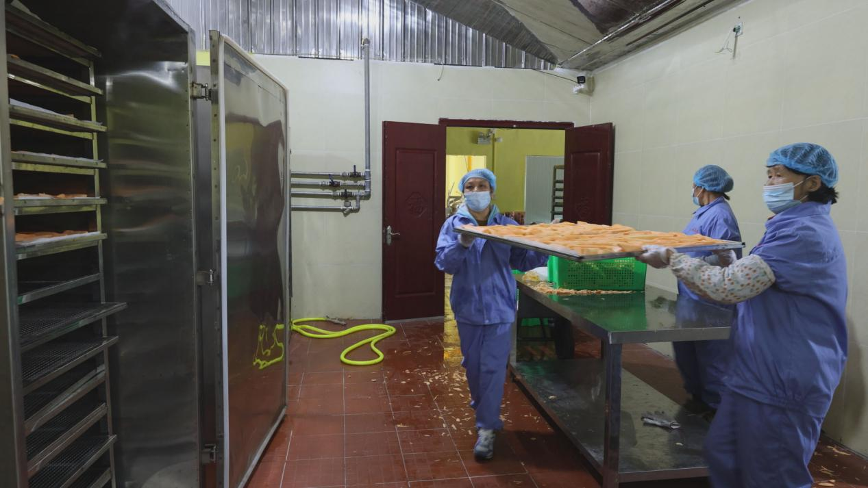 在志宏農(nóng)業(yè)的紅薯倉庫,企業(yè)負(fù)責(zé)人陳修武正忙著將收獲后存放的紅薯運(yùn)往工廠,按品種分類加工!盁熓25”經(jīng)削皮、切塊、蒸熟等工序,制成暢銷的紅薯片、紅薯干;淀粉含量高的“商薯19”,則主要用于制作紅薯粉條,每斤售價12元左右,大幅提升了產(chǎn)品附加值。