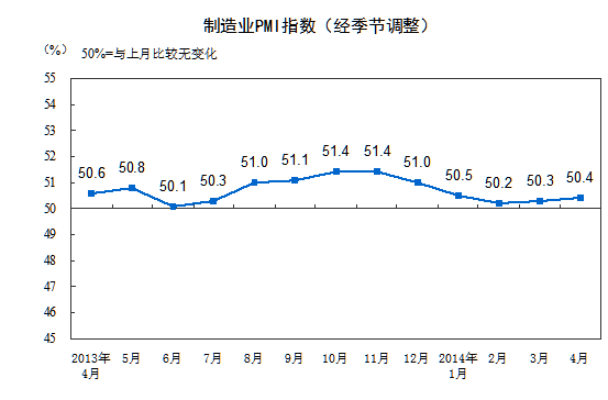 2014年4月中國制造業(yè)采購經(jīng)理指數(shù)為50.4%
