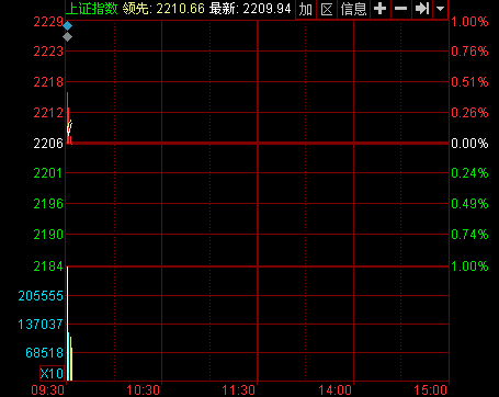新華網(wǎng)消息 15日兩市開盤雙雙飄紅,微幅高開。滬指報(bào)2207.23點(diǎn),上漲0.76點(diǎn),漲幅0.03%,成交8.89億元;深成指報(bào)7901.19點(diǎn),上漲7.30點(diǎn),漲幅0.09%,成交10.28億元;創(chuàng)業(yè)板指報(bào)1382.87點(diǎn),上漲2.57點(diǎn),漲幅0.19%,成交1.92億元。