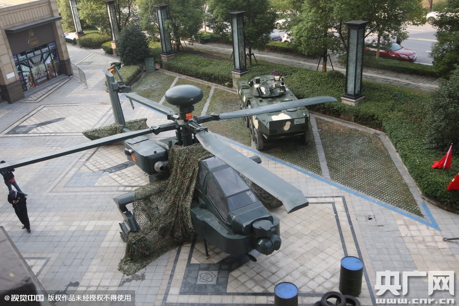 2015年11月02日,浙江杭州,杭州一家房產(chǎn)商為了沖量,用上了“飛機大炮坦克”。該開發(fā)商在樓盤外放置了三架仿真模型飛機,一架艦載機,兩架直升級,另有兩門“大炮”、兩輛“裝甲車”、一輛“坦克”。這些大家伙因為外形逼真,吸引了市民的眼球。9月至10月一向是一年成交旺季,自進入金九銀十以來,杭州各城區(qū)成交量有一定程度的上升,但因為庫存較大,銷售前景并不樂觀。