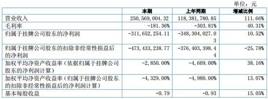 中國(guó)網(wǎng)財(cái)經(jīng)8月25日訊 8月24日盤后,恒大淘寶披露2016年半年度報(bào)告。報(bào)告期內(nèi),恒大淘寶完成營(yíng)業(yè)收入2.51億元,同比增長(zhǎng)111.66%;歸屬于掛牌公司股東的凈利潤(rùn) 虧損3.12億元,虧損減小,去年同期虧損3.48億元;基本每股收益-0.79元,去年同期為-0.93元。