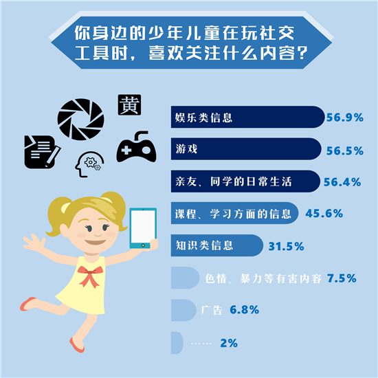 56.9%受訪者發(fā)現(xiàn)兒童喜歡關(guān)注娛樂類信息