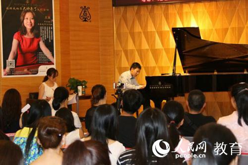 人民網(wǎng)佛山8月17日電 暑假期間,廣東省佛山市青少年的各種文化活動(dòng)搞得熱火朝天:舞蹈歌唱的練習(xí),樂器繪畫的培訓(xùn),演講朗誦的表演,鋼琴大賽的選拔,處處洋溢著文化的氣息。特別是華南理工大學(xué)藝術(shù)學(xué)院教師郭巖出于個(gè)人友情,與佛山施坦威鋼琴專賣店合作,邀請(qǐng)法籍華裔鋼琴家、法國(guó)著名音樂公司阿德夫·巴亞爾(ADF-Bayard Musique)的簽約演奏家王濱來(lái)到佛山,在最繁華的商業(yè)街禪城東方廣場(chǎng)音樂廳,為孩子們舉行了一系列的授課講學(xué)活動(dòng),無(wú)疑又給這里的文化熱潮添加了一把火。