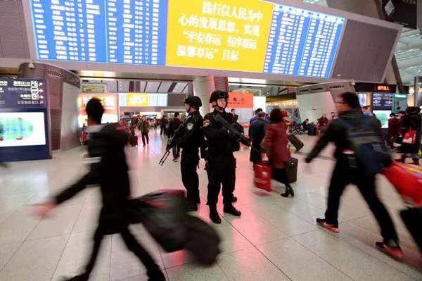 據(jù)悉,春節(jié)期間北京各大火車站的客流主要以中短途走親訪友為主。節(jié)日期間,北京鐵路警方在北京站、北京西站、北京南站等客流集中的火車站安排執(zhí)勤民警、特警值守,同時還安排巡邏民警加強對廣場、售票廳、候車室和站臺等區(qū)域的巡邏檢查,全面清除各類不安全隱患。此外,在京滬、京哈、京廣、京九、京原、京包、京通等進(jìn)京鐵路沿線、高鐵沿線和主要車站安排民警盯守、巡邏,全面確保節(jié)日期間北京各大火車站和鐵路沿線的安全。