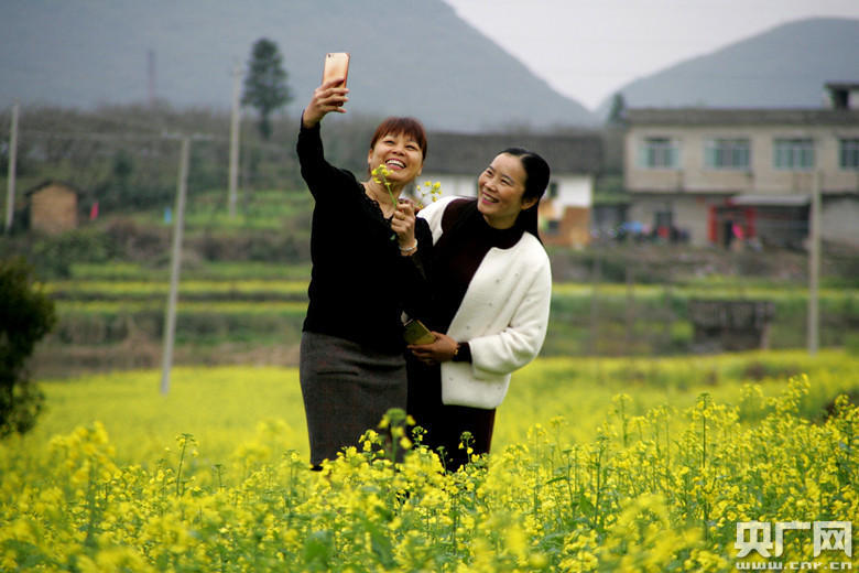 游人在廣西桂林市恭城瑤族自治縣平安鎮(zhèn)虎溪村踏春賞花(央廣網(wǎng)發(fā) 通訊員供圖)