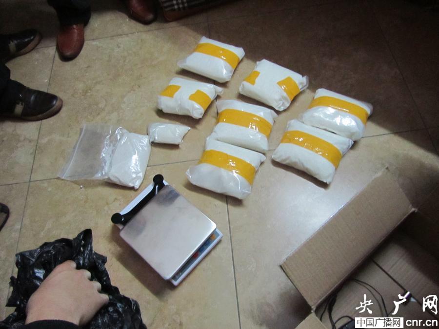 1月13日,專案指揮部獲悉該團伙派員近日將從深圳攜大宗毒品K粉、冰毒等毒品抵瓊交易。為此,專案組會同秀英公安分局在省廳禁毒總隊及有關(guān)部門的配合協(xié)助下,兵分五路趕赴預(yù)定地點守候。當(dāng)天,專案組民警分頭出擊,分別在海口市人工湖金牛嶺附近抓獲犯罪嫌疑人劉某沖,在?谑械脛偕陈纷カ@犯罪嫌疑人陳某文,在?谑泻芳呀菝涝淳频1007房、809房、610房分別抓獲吳某儒、陳某有等9人,現(xiàn)場共繳獲K粉9公斤、冰毒1公斤, 仿制左輪手槍1支,子彈7發(fā),涉案車輛4輛,摧毀販毒窩點兩個,繳獲贓款贓物一批。此案的成功告破,斬斷了一條廣東通往海南的販毒通道。