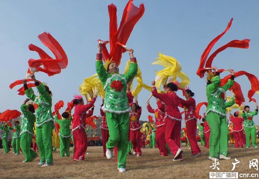 震天的鑼鼓敲起來,歡快的秧歌扭起來。在奇臺(tái)縣體育場,來自全縣15個(gè)鄉(xiāng)鎮(zhèn)社火團(tuán)們身著節(jié)日的盛裝,帶著飽滿的熱情,為群眾帶來精彩的表演。在鏗鏘的鼓點(diǎn)聲中,奇臺(tái)鎮(zhèn)秧歌隊(duì)鑼鼓喧天,彩練飛舞。碧流河鄉(xiāng)社火隊(duì)巨龍飛躍,醒獅翻騰,向觀眾頻頻致意,表達(dá)美好祝愿。