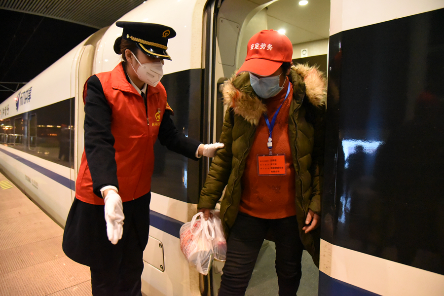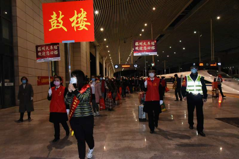 央廣網福州2月22日消息(記者張子亞)昨晚21時01分,由蘭州西站開往福州的G4704次列車緩緩停穩(wěn)在福州站站臺。該趟列車搭載著來自甘肅定西市安定區(qū)、漳縣、岷縣等地的519名務工人員以及地方工作人員、公安干警、醫(yī)務人員27人,這是鐵路部門開行的首趟前往東南沿海地區(qū)的定制高鐵復工專列。
