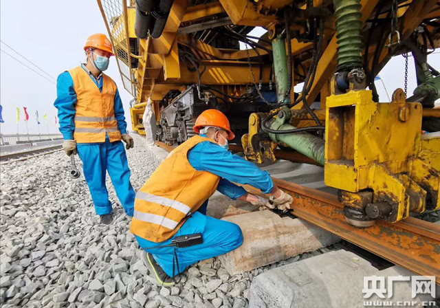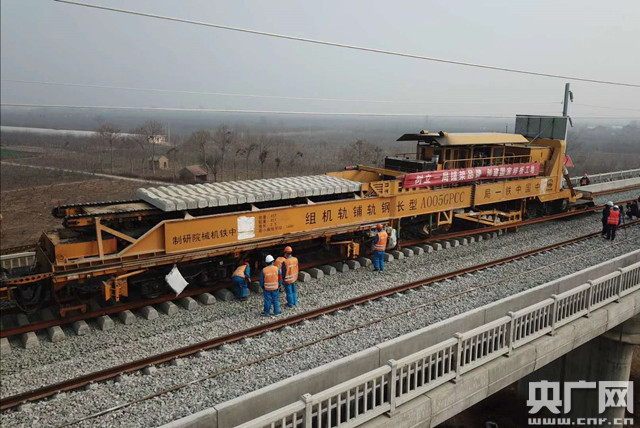 央廣網(wǎng)西安2月26日消息(記者劉濤 通訊員周博倫 郭寅虎)2月26日10時(shí)30分,在陜西省咸陽市禮泉縣,隨著鋼軌被平穩(wěn)準(zhǔn)確安放在一根根整齊的軌枕上,銀西高鐵陜西段鋪軌工程全面復(fù)工。