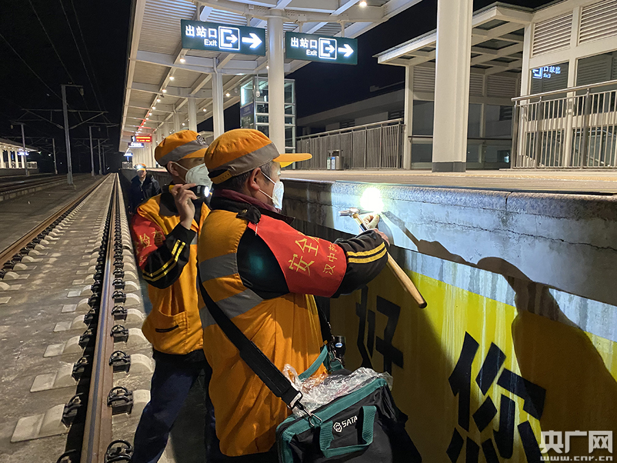 鐵路工人正在夜巡(央廣網(wǎng)發(fā) 通訊員胡楠 攝)