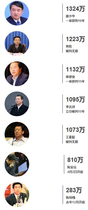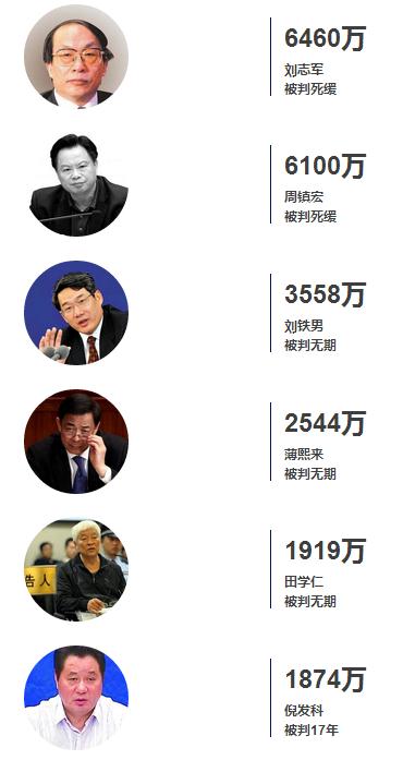 最高受賄6460萬(wàn)元,最少被控283萬(wàn)元