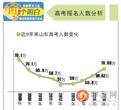 今年,來自教育部的全國高考報名人數(shù)尚未公布!2016年高招調查報告》指出,在2008年達到歷史最高峰1050萬人之后急劇下降,直至2014年起開始止跌趨穩(wěn)。根據教育部數(shù)據,2015年全國高考報名人數(shù)為942萬人,較2014年增加3萬人。