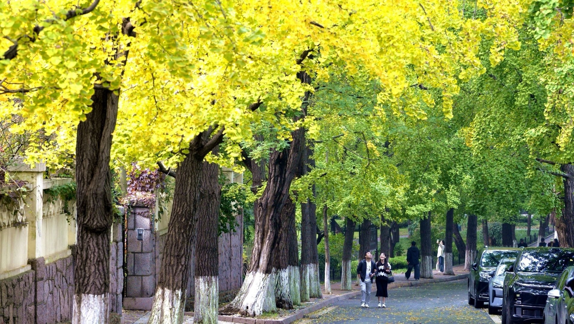 八大關(guān)里,梧桐染金、楓葉流丹、銀杏鋪黃,五彩斑斕的葉片在枝頭搖曳,風(fēng)一吹便簌簌落下,鋪成滿地詩意。