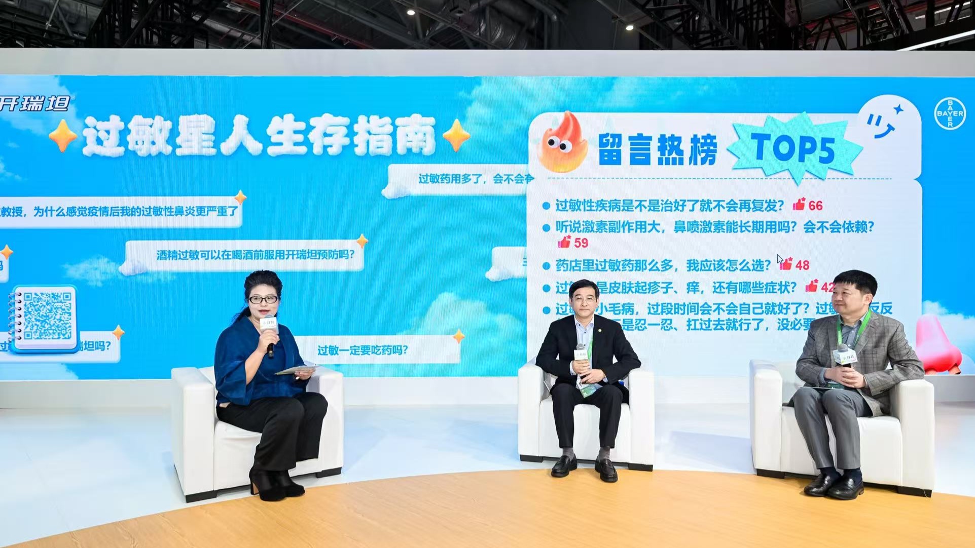 在第八屆中國(guó)國(guó)際進(jìn)口博覽會(huì)這一全球矚目的開(kāi)放平臺(tái)上,拜耳特別邀請(qǐng)過(guò)敏性疾病領(lǐng)域頂尖權(quán)威專家——中華醫(yī)學(xué)會(huì)變態(tài)反應(yīng)學(xué)分會(huì)主任委員、南京醫(yī)科大學(xué)第一附屬醫(yī)院/江蘇省人民醫(yī)院變態(tài)反應(yīng)(過(guò)敏)科主任程雷教授,國(guó)家免疫學(xué)(含變態(tài)反應(yīng))專業(yè)醫(yī)療質(zhì)量控制中心副主任、中國(guó)醫(yī)學(xué)科學(xué)院北京協(xié)和醫(yī)院變態(tài)(過(guò)敏)反應(yīng)科主任關(guān)凱教授開(kāi)展“過(guò)敏星人生存指南”專題直播,兩位權(quán)威專家圍繞“過(guò)敏性疾病流行現(xiàn)狀、診療誤區(qū)、患者科普教育、過(guò)敏中心建設(shè)”等話題展開(kāi)分享,深入淺出地從利國(guó)利民的學(xué)術(shù)視角帶來(lái)專業(yè)洞見(jiàn)。