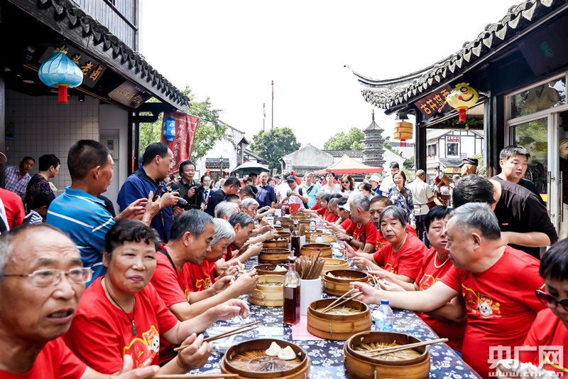南翔“小籠長街宴”請來了35對新中國同齡人伉儷(央廣網(wǎng)發(fā) 主辦方供圖)