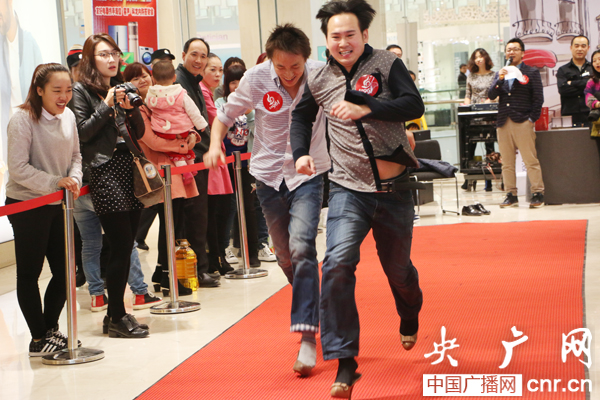 因?yàn)槭堑谝淮未└吒,男士們都覺得很好玩。超半數(shù)的男士表示,主要是為了陪女朋友過來,體驗(yàn)一下女人穿高跟鞋的辛苦!拔疫@次真是親身體驗(yàn)了一下刀鋒般的疼痛,不過活動(dòng)很有意思,既愉悅了身心又鍛煉了身體!眳①愓咄跸壬f。