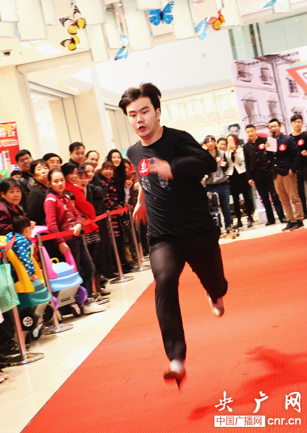 跑了一輪又一輪之后,男選手們似乎都適應(yīng)了高跟鞋的疼痛,再沒有因?yàn)楦吒牟贿m而影響奔跑的速度,只見選手們麻利兒的穿上高跟鞋全速飛奔,反倒比平時(shí)跑的更快了。最終,身高近1米8的大高個(gè)兒小伙兒馬士杰以2秒02的成績贏得了單程15米賽道決賽的冠軍。