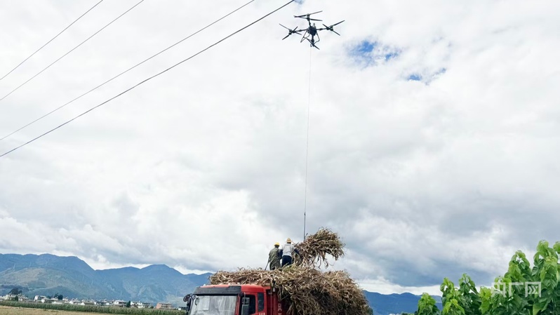 無人機在田間穿梭忙碌,一捆捆新鮮的青貯玉米被快速運送至裝車點。